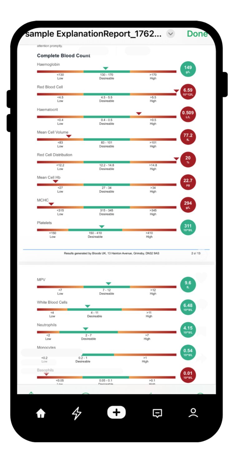 Your blood test results will be uploaded to your personal dashboard, along with comments and advice if you have requested it.